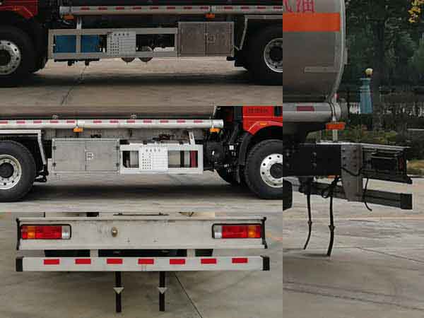 配置 | 1、該車適用于危險(xiǎn)品運(yùn)輸,運(yùn)送危險(xiǎn)貨物車輛類型為:FL型,類項(xiàng)號(hào):3。運(yùn)輸介質(zhì):汽油,密度:700千克/立方米。罐體有效容積24.5立方米,罐體外形尺寸(長(zhǎng)×寬×高)(mm):7200×2400×1750。整車外形長(zhǎng)與采用軸距/后懸對(duì)應(yīng)關(guān)系為(mm):10110/4600+1350/2760,10110/4800+1350/2560。2、側(cè)、后防護(hù)材料均為鋁合金,螺栓連接;后防護(hù)截面尺寸(寬×高)(mm)60×120,下邊緣離地高500mm。3、隨底盤選裝高頂駕駛室,選裝前圍和燈具。僅選用排氣管前置、限速裝置(限速79km/h)、前輪盤式制動(dòng)及子午線輪胎的底盤;安裝帶有衛(wèi)星定位功能的行駛記錄儀;ABS系統(tǒng)生產(chǎn)廠家:長(zhǎng)春瑞立科密汽車電子有限公司,型號(hào):CM4XL。采用發(fā)動(dòng)機(jī)與油耗值對(duì)應(yīng)關(guān)系為(L/100km):CA6DK1-32E6/37.47,CA6DK1-28E6/37.47。 該車后軸為采用空氣懸架. | ||
