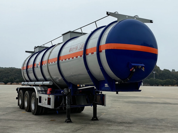 其它:該車為危險品運輸車輛.危險貨物運輸車輛的車輛類型為AT型車輛.罐體總容量為29.7立方米,罐體有效容積為28.3立方米,準運介質的最大密度1130千克/立方米.罐體外形尺寸長10100mm(前段含封頭長:4900mm,后段含封頭長:5200mm),封頭前直徑:1830mm;封頭后直徑:2080mm;EBS系統生產企業:廣州瑞立科密汽車電子股份有限公司,EBS型號:CM-TEBS.選裝EBS系統生產企業:威伯科汽車控制系統(中國)有限公司,EBS型號:4801020640.側防護裝置材質為鋁合金,連接方式:螺栓連接;后下部防護裝置,材料:Q235B,連接方式:螺栓連接,斷面尺寸(mm):140×50,下邊緣離地高430mm;采用適用于牽引危險品運輸半掛車的牽引車;后軸裝有空氣懸架.鋼圈等附件用鋁合金材料時整備質量就減小,所以整備質量兩個.