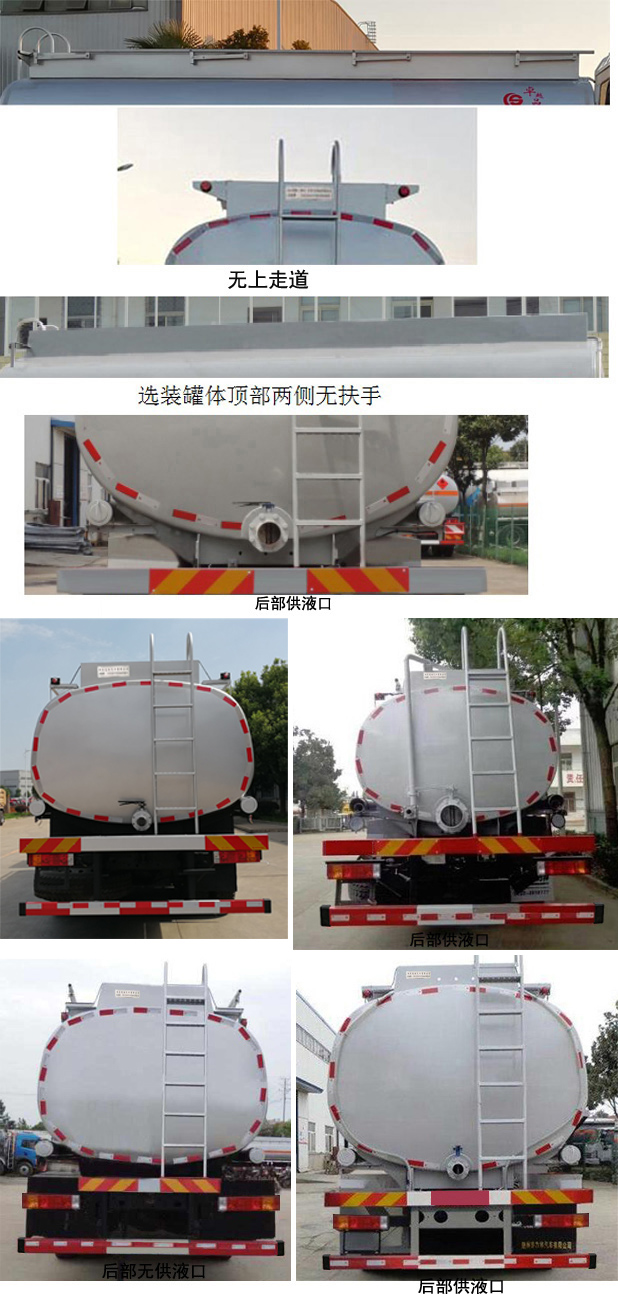 備注 | 隨底盤選裝同系列駕駛室,選裝進氣口樣式。選裝罐體上部無上走道,有扶手或無扶手,后示廓燈架樣式;選裝罐體后部供液口閥門。 | ||||||||||