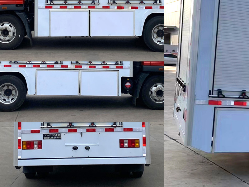 其它: | 廂體頂部封閉,不可開啟。該車配備專用裝備架等專用設(shè)備, 主要用于裝載警用裝備及勘查、搶險救援裝備的專用車輛。側(cè)防護由車身結(jié)構(gòu)代替,后防護材料為Q235,焊接,后防護截面尺寸(mm)100×50,下邊緣離地高450mm。隨底盤選裝駕駛室,選裝鋁合金輪輞。ABS型號/生產(chǎn)企業(yè):XH-KQ4S4M-E01/廣州市西合汽車電子裝備有限公司,CM4XL-4S/4M/廣州瑞立科密汽車電子股份有限公司,VIE ABS-Ⅱ/浙江萬安科技股份有限公司。發(fā)動機與油耗值對應(yīng)關(guān)系為(L/100km):WP2.3NQ130E61/10.18,D25TCIF1/11.06,WP2.5NQ160E61/10.11,WP2.5NQ150E61/10.11。選裝ETC。僅采用軸距3280mm。整備質(zhì)量包含冷卻液、潤滑劑、反光背心、三角警告牌、備胎、停車楔、隨車工具、專用裝備。貨廂重量(kg):2160;材質(zhì)/厚度:底板,碳鋼/2mm;側(cè)板,內(nèi)板鋁板/1.2mm,外板碳鋼/2mm。 |