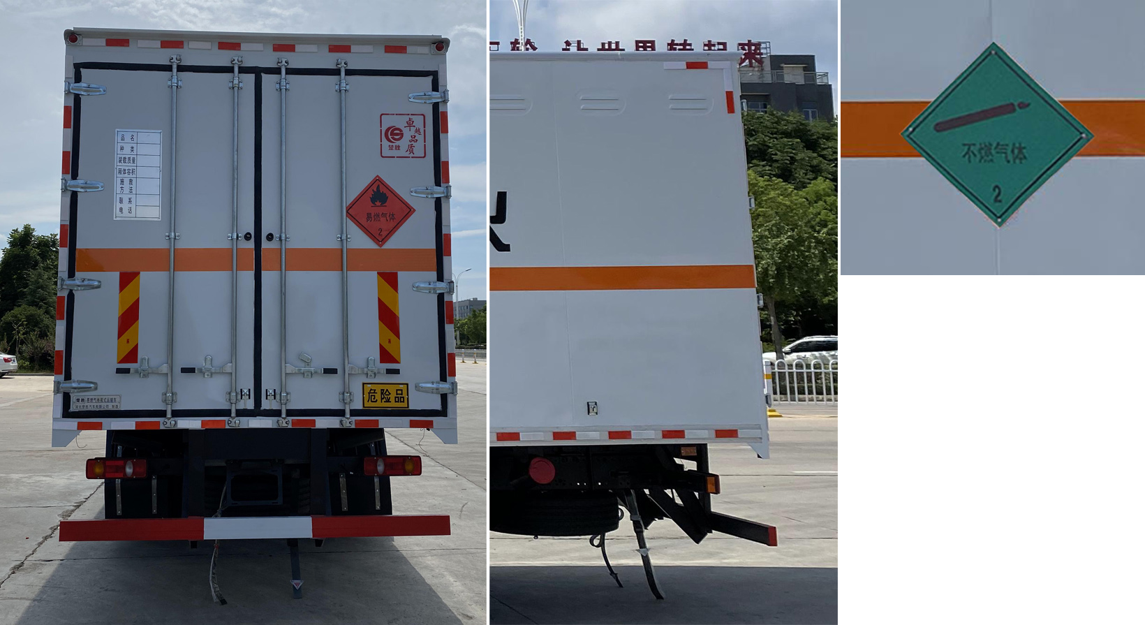 配置 | ABS型號:3631010-C2000;ABS生產企業:東科克諾爾商用車制動系統(十堰)有限公司;安裝有限速裝置;限速裝置限速(km/h):80;安裝有具有衛星定位功能的行駛記錄儀;選裝描述:隨底盤選裝駕駛室前面罩,選裝側窗玻璃;駕駛室頂部中間三個裝飾燈為選裝件;前霧燈為選裝件;駕駛室前臉擾流罩為選裝件。選裝后部無尾板。運輸具有**包裝的不可燃氣體,安裝2.2類危險品標識。該車型可選裝ETC車載裝置.;發動機/油耗值(L/100km)對應關系為:B6.2NS6B210/26.5,DDi50E190-60/23.9;所用材料材質、連接方式以及后部防護裝置的主要尺寸參數(斷面尺寸和離地高度):側/后防護材料為Q235,側防護螺栓連接,后防護焊接,截面尺寸120×60mm,下邊緣離地高490mm;尾板、上下坡道(或類似裝置)收起狀態的水平長度(mm):液壓升降尾板收起狀態水平長度為290mm,尾板質量為550kg;車廂頂部封閉且不可開啟;運輸**容器(瓶)包裝的貨物;FL型車輛;危險貨物類項號:2.1,2.2;其他說明:該車為危險貨物運輸車.僅選用排氣管前置、前輪盤式制動及子午線輪胎的底盤,轉向輪安裝輪胎爆胎應急防護裝置,后軸采用空氣懸架;廂體側面選裝開門型式及位置,選裝不帶側開門,選裝瓦楞板結構;廂體側面板選裝開百葉窗。 | ||