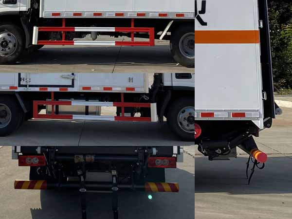 配置 | ABS型號:ABS-E,ABS-VI·E;ABS生產企業:威伯科汽車**系統(**)有限公司,廣州瑞立科密汽車電子股份有限公司;安裝有限速裝置;限速裝置限速(km/h):80;安裝有具有衛星定位功能的行駛記錄儀;選裝描述:選裝后部無尾板,該車型可選裝ETC車載裝置.運輸具有**包裝的不可燃氣體,安裝2.2類危險品標識;發動機/油耗值(L/100km)對應關系為:F2.8NS6B131/10.85,Q28-130E60/11.02;所用材料材質、連接方式以及后部防護裝置的主要尺寸參數(斷面尺寸和離地高度):側、后防護材料均為Q235,螺栓連接;后防護截面尺寸100×100mm,下邊緣離地高450mm.選裝后部無尾板,后防護材料為Q235,焊接,截面尺寸100×50mm,下邊緣離地高450mm;尾板、上下坡道(或類似裝置)收起狀態的水平長度(mm):液壓升降尾板收起狀態水平長度為280mm,尾板質量為350kg;車廂頂部封閉且不可開啟;運輸**容器(瓶)包裝的貨物;危險貨物類項號:2.1,2.2;其他說明:該車為危險貨物運輸車.僅選用排氣管前置,限速裝置,前輪盤式制動及子午線輪胎的底盤.轉向輪安裝 輪胎爆胎應急防護裝置;廂體側面選裝開門型式及位置,選裝不帶側開門,選裝瓦楞板結構;廂體側面板選裝開百葉窗。 | ||