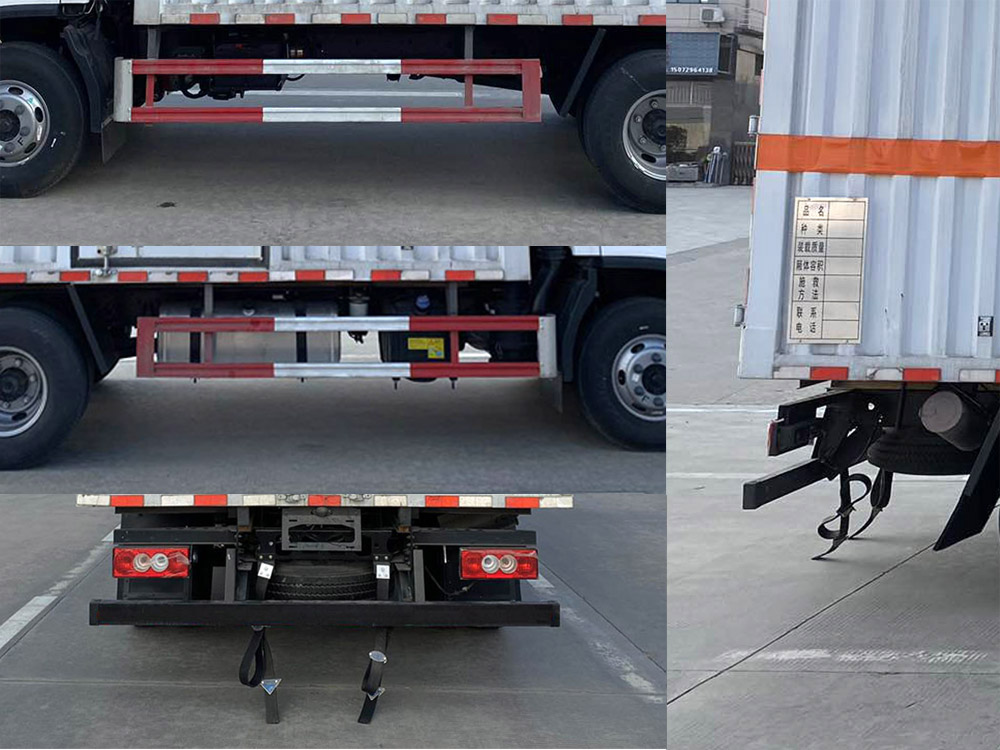 其它: | 1、該車適用于運輸危險品。廂體頂部封閉不可開啟。運輸具有獨立容器(瓶)包裝的物品,運送危險物品類項號:8。2、側,后防護材料均為Q235,螺栓連接;后防護截面尺寸100×50mm,下邊緣離地高410mm。廂體側面選裝開門型式及位置,選裝不帶側開門,選裝瓦楞板結構;選裝百葉窗。3、隨底盤選裝排半駕駛室,選裝導流罩。僅選用排氣管前置、限速裝置(限速80km/h)、前輪盤式制動及子午線輪胎的底盤;轉向輪裝備輪胎爆胎應急防護裝置。安裝帶衛星定位功能的行駛記錄儀。ABS系統型號:ABS-VI.E;生產企業:廣州瑞立科密汽車電子股份有限公司.ABS系統型號:ABS-E;生產企業:威伯科汽車控制系統(中國)有限公司.ABS系統型號:ABS8.8 ECU 24V,生產企業:東科克諾爾商用車制動系統(十堰)有限公司。發動機/油耗值(L/100km)對應關系為:CY4SK261/16.09,D30TCIF1/16.19,F2.8NS6B156/15.39,F3.8NS6B156/14.90??蛇x裝ETC車載裝置。 | ||