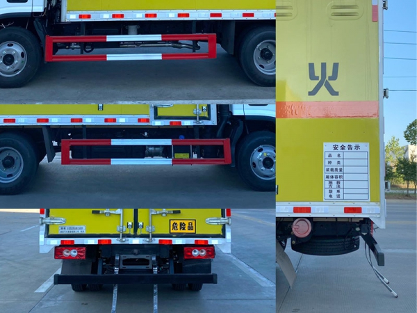 嚴(yán)格按照公告尺寸制作。外板采用優(yōu)質(zhì)冷軋鋼板帶百葉窗,內(nèi)飾為導(dǎo)電性能良好的鋁平板有透氣孔,矩形骨架結(jié)構(gòu)內(nèi)部填充防潮阻燃擠朔板,復(fù)合加鉚合工藝。廂體四周鋁合金包邊及包角,車(chē)廂底板鋪設(shè)防靜電膠皮,廂體前臉50公分高鋪設(shè)防靜電膠皮。后部設(shè)置對(duì)開(kāi)門(mén),可選裝側(cè)門(mén)位置,廂體內(nèi)部?jī)蓚?cè)安裝捆綁貨物的臥環(huán)。廂體內(nèi)部安裝氣體感應(yīng)器及防盜報(bào)警器。車(chē)廂一周粘貼橙色放光帶,箱體粘貼 菱形告示牌,安全告示牌,危險(xiǎn)品牌,箱體安裝示廓燈(前白后紅),拖地靜電帶。箱體可選裝瓦楞板工藝。