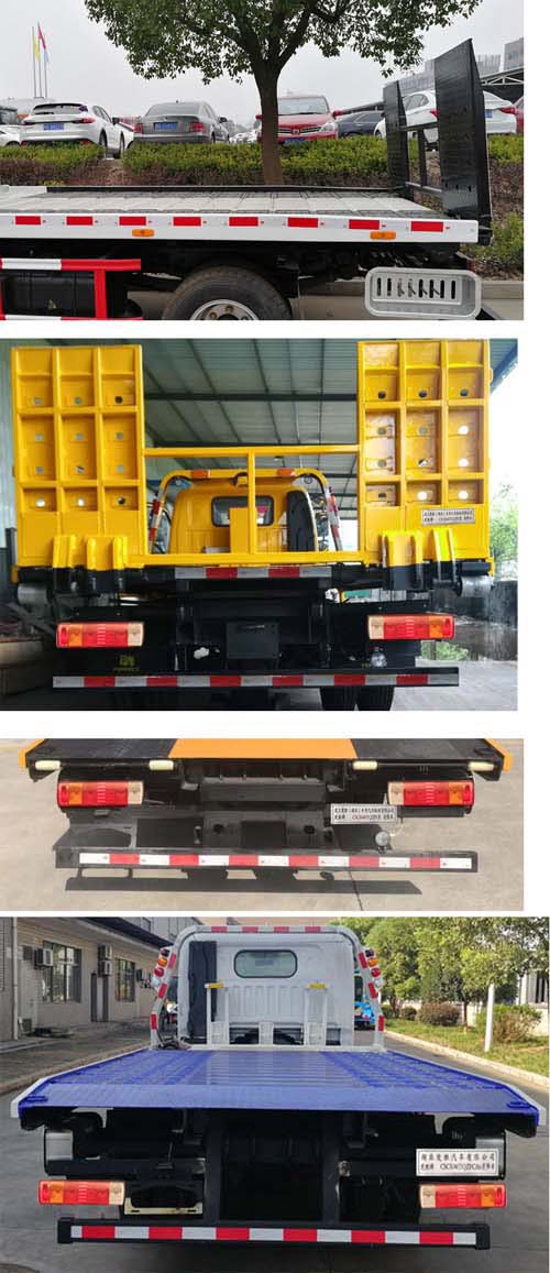 配置 | 該車主要用于道路摩托車清障,主要專用裝置為平板、絞盤、鋼絲繩、油缸。托舉質量:500kg;側防護采用冷彎型鋼/Q235,螺栓連接;后防護采用冷彎型鋼/Q235,焊接,截面尺寸100×50mm,離地高450mm。平板后部選裝上尾板及選裝無上尾板。隨底盤選裝排半駕駛室,選裝改側窗的駕駛室,選裝新前臉駕駛室,選裝不同的側門結構,選裝新結構的保險杠。ABS防抱死制動系統生產廠家/型號:1.廣州瑞立科密汽車電子股份有限公司/CM4XL-4S/4M;2.浙江萬安科技股份有限公司/VIE ABS-II。選裝龍門架樣式。 | ||