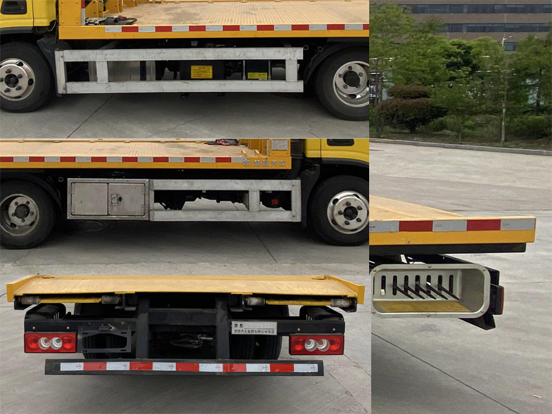其它: | 該車主要用于道路清障,主要專用裝置為平板、絞盤、鋼絲繩、油缸。該車無托舉功能。側防護材料為鋁合金,螺栓連接;后防護材料為Q235,焊接,截面尺寸(mm):100x50,下緣離地高420mm。ABS型號/生產廠家:YF8/武漢元豐汽車電控系統有限公司,ABS-E/威伯科汽車控制系統(中國)有限公司,ABS-VI·E/廣州瑞立科密汽車電子股份有限公司,YF9/武漢元豐汽車電控系統有限公司。僅選用軸距3360mm。準乘人數/整備質量對應關系:2人/2865kg,3人/2800kg。選裝前圍。整備質量包含冷卻液、潤滑劑、停車楔、反光背心、三角警告牌。 |