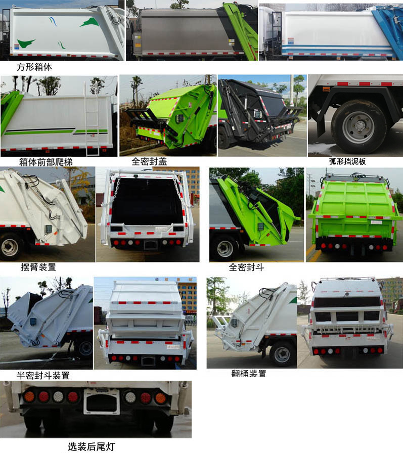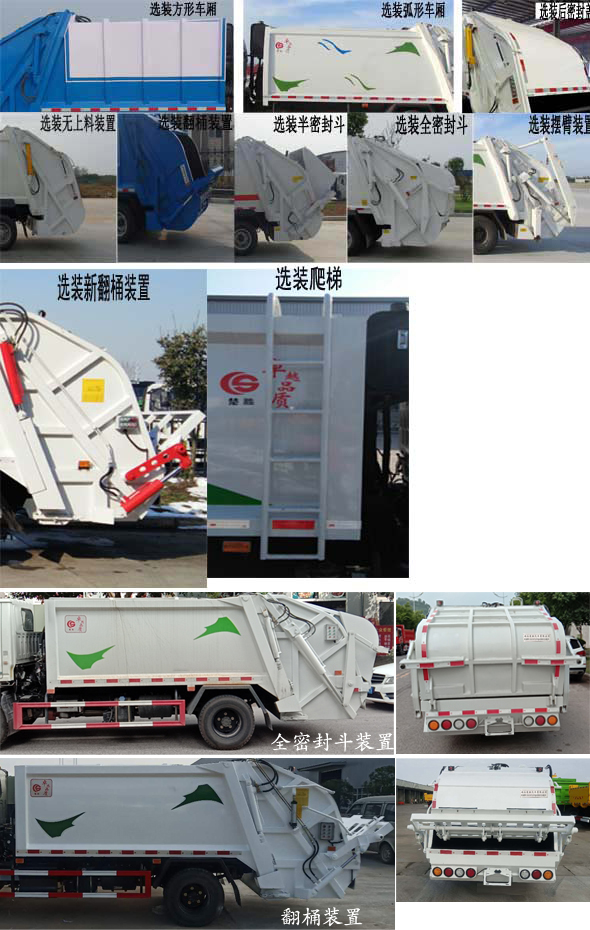配置  1、該車主要專用裝置由箱體、壓縮系統組成,用于垃圾的收集與清運。該車可選裝方形或弧形箱體,選裝全密封蓋裝置,選裝方形擋泥板,選裝箱體前部爬梯,選裝后部工作裝置。選裝工作裝置時,外形長(mm)/后伸(mm)/整備質量(kg)對應關系:①無上料裝置: 6525/-/5530;②擺臂裝置: 6685/160/5850;③全密封斗裝置:6725/200/5850;④翻桶裝置,半密封斗裝置:6925/400/5850。2、側防護采用冷彎型鋼/Q235,螺栓連接;后防護由專用裝置替代,下邊緣離地高500mm。3、ABS系統型號:VIE ABS-II,ABS系統生產廠家:浙江萬安科技股份有限公司。發動機JX4D30D6H的油耗值為13.9 L/100km。隨底盤選裝左右車門上方黑色貼膜可選擇取消。選裝輪輞外觀。選裝前臉、前部燈具。該車型可選裝ETC車載裝置.