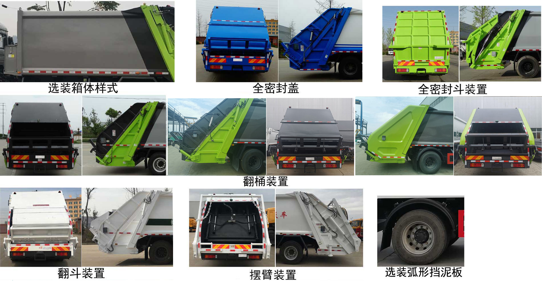 配置 | 1、該車主要專用裝置由箱體、壓縮系統組成,用于垃圾的收集與清運。該車可選裝方形或弧形箱體,選裝全密封蓋裝置,選裝方形擋泥板。選裝后部工作裝置。選裝工作裝置時外形長/后伸對應關系為(mm):①無上料裝置:8680/-;②全密封斗裝置和擺臂裝置:8880/4500/200;③翻桶裝置和翻斗裝置:9080/400。僅采用4500mm軸距。2、側防護采用冷彎型鋼/Q235,螺栓連接;后防護由專用裝置替代,下邊緣離地高:500mm。3、隨底盤選裝前圍和燈具,選裝寬體保險杠,腳踏板。安裝帶有衛星定位功能的行駛記錄儀。ABS系統生產廠家:長春瑞立科密汽車電子有限公司,型號:CM4XL。采用的發動機與油耗值對應關系為(L/100Km):CA4DK1-22E6/25.6,CA4DK1-18E6/25.6,CA6DH1-24E6/26.92。 | ||