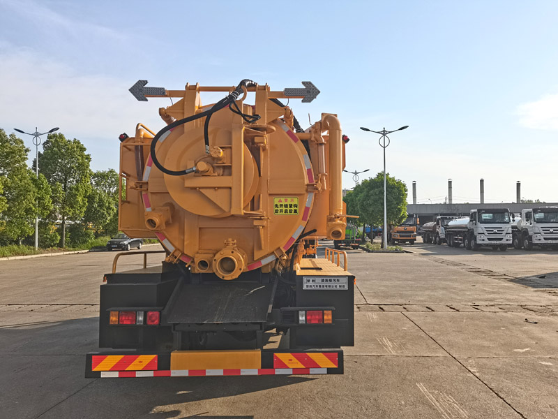 其它:該車用于下水道疏通清洗及吸污并具有舉升功能,主要專用裝置:罐體和清洗吸污裝置.污水罐外形尺寸(總長×直徑)(mm):4600×1600,污水罐總容量8.5立方米,有效容積8.13立方米;罐體兩側為水箱,截面由圓弧及多邊行組成,外形長為4000mm,清水罐總容量3.9立方米,有效容積3.88立方米;清水罐和污水罐為獨立罐體,清洗、吸污兩種功能不能同時使用,兩個罐體不能同時滿載.側、后防護材料均采用Q235,側防護螺栓連接,后防護焊接,后防護截面尺寸(mm):200×60,離地高420mm.ABS型號/廠家:CM3XL-4S/3M(4SF)/廣州瑞立科密汽車電子股份有限公司,XH-KQ4S3M-E01/廣州市西合汽車電子裝備有限公司.僅選用3900mm軸距底盤,隨底盤選裝駕駛室.