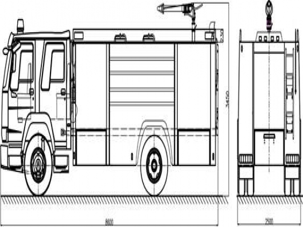 8噸消防車采用中國重汽濟南卡車有限公司ZZ5207TXFV471GF5型二類汽車底盤,原裝雙排駕駛室,乘員2+4人,該車駕乘舒適輕便。上裝采用外露式水罐,整車載液量為水7600kg。器材箱采用高質量鋁合金卷簾門。底盤取力,發動機型號為MC07.34-60,最大功率257kW,通過萬向聯軸器驅動安裝在汽車尾部泵房里的上海雄真CB20.10/30.60型中低壓消防泵,可在1.0MPa下穩定輸出60L/s的流量;2.0MPa下穩定輸出30L/s的流量;車頂安裝成都威斯特消防器材有限責任公司生產的PS8/60W型消防炮(水罐消防車),流量60L/s,對應壓力0.8MPa,最大承壓1.3MPa,射程75m,可360°旋轉。同時該車具有比功率大、綜合性能強、操控集中簡便等特點。